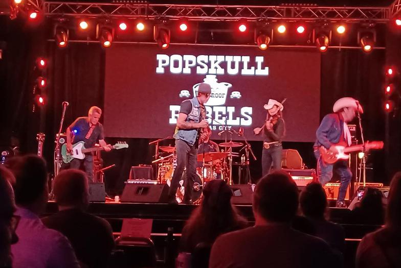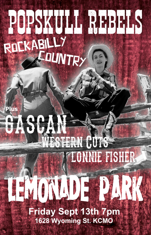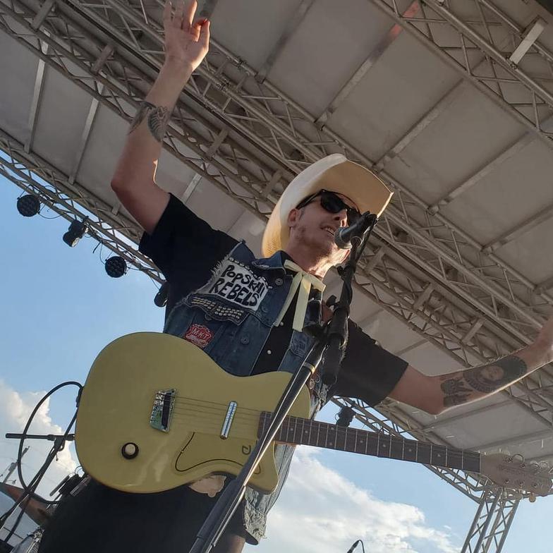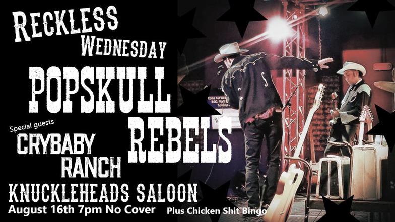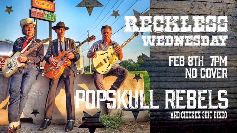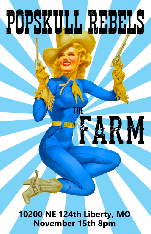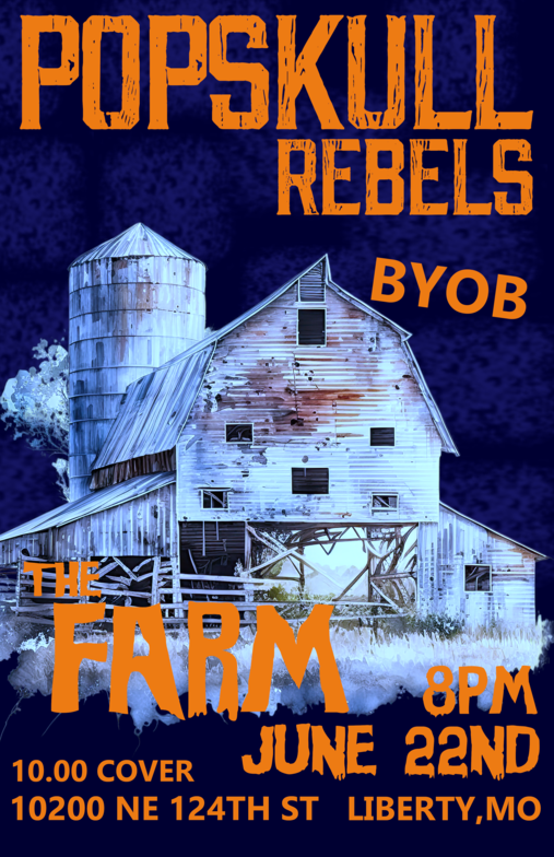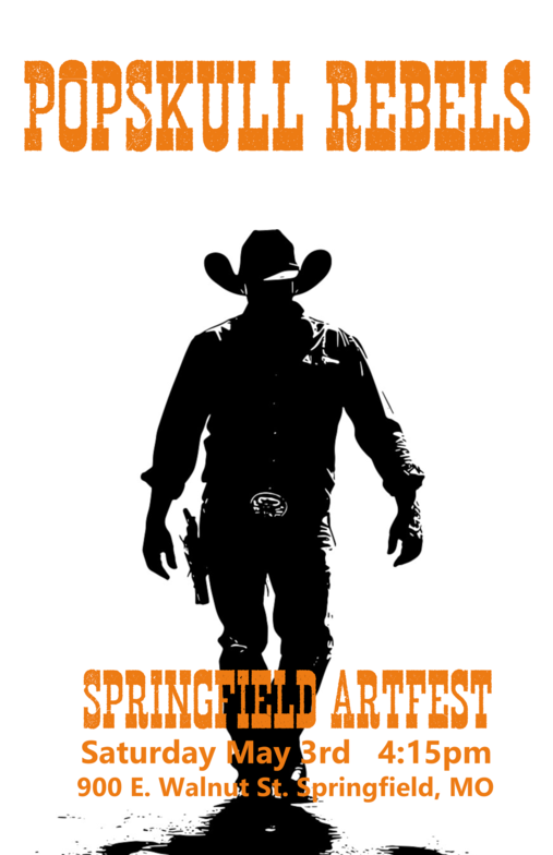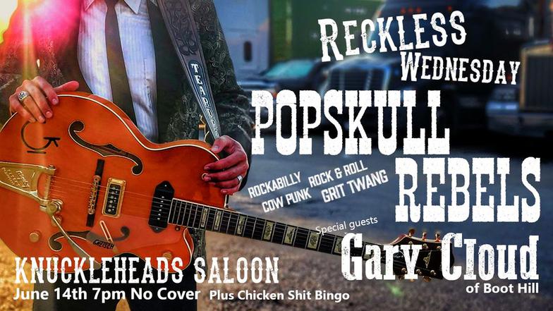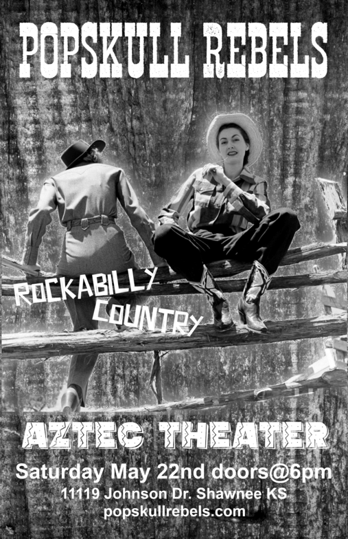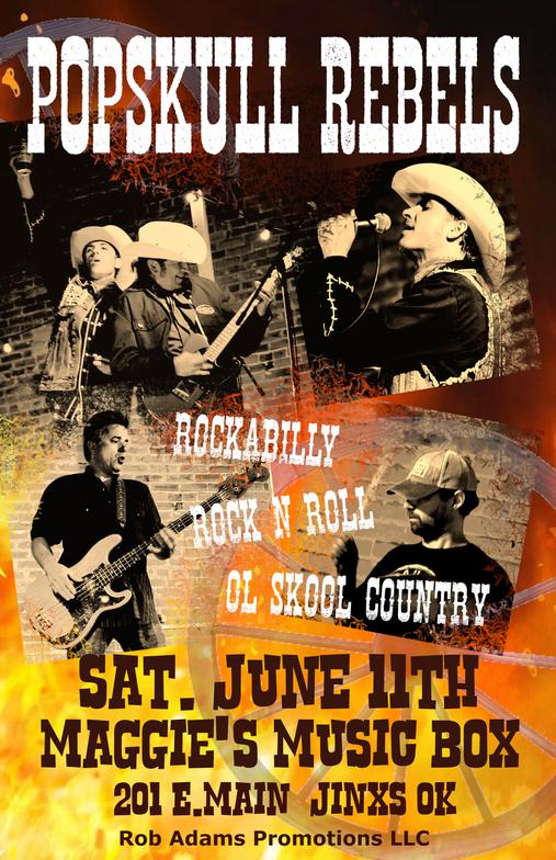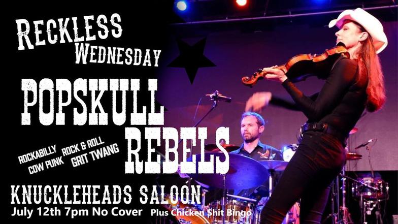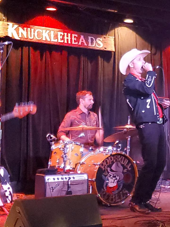 "PopSkull" was a slang word in the Civil War for Cheap Whiskey, we are influence in Ol'school Country and Rockabilly, and a little punk thrown in for good measure! J Doyle is Founding member of the Rumblejetts and Gretsch Artist. JD also in the early 90's was a member of the Roots/Country band the Bindlestiffs,Brian Sifton is from KC's Cry Baby Ranch, a local favorite! Cory Corbino held down the bass for the 90's punks Absolute Ceiling and roots rev ups the Bindlestiffs, KA “TearDrop” Browning, all I can say is just wait! he's like a bull ready to bust out of a gate at a Rodeo! The Rebels have graced the stages opening for Junior Brown, The Smithereens, Reverand Horton Heat, The Vandoliers, Big Sandy,