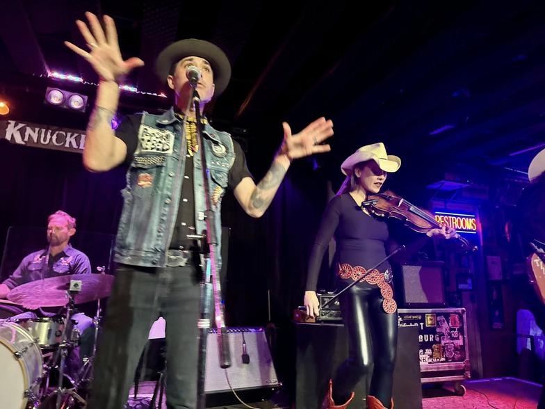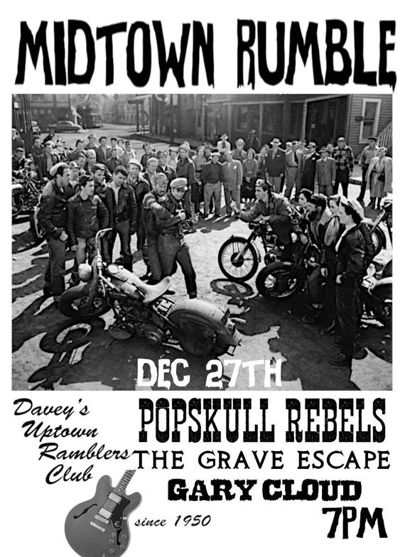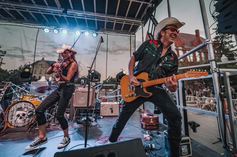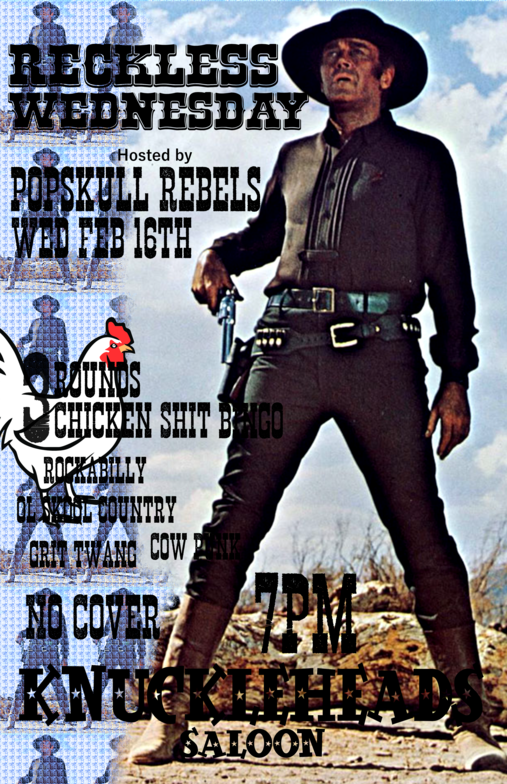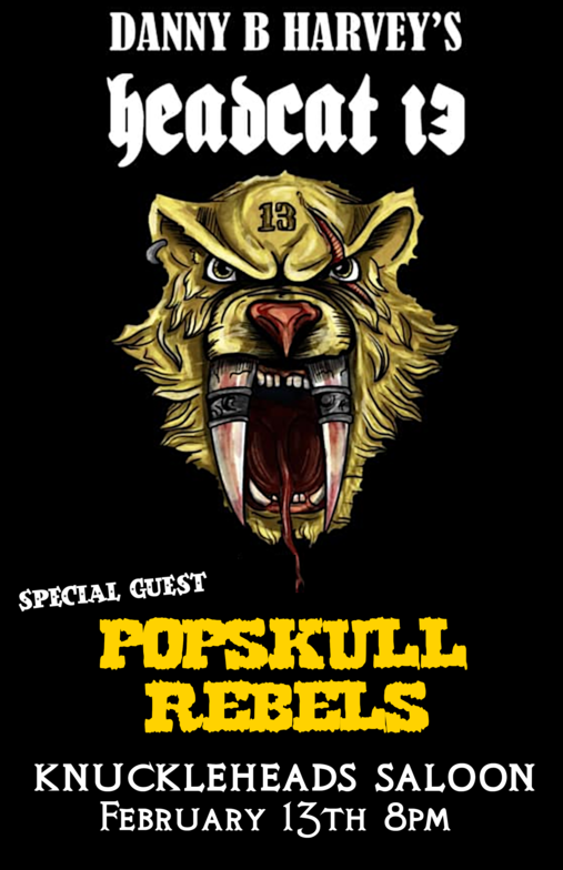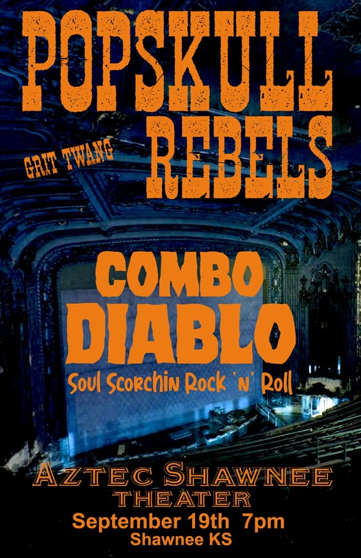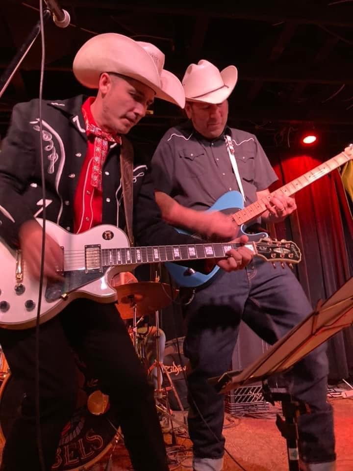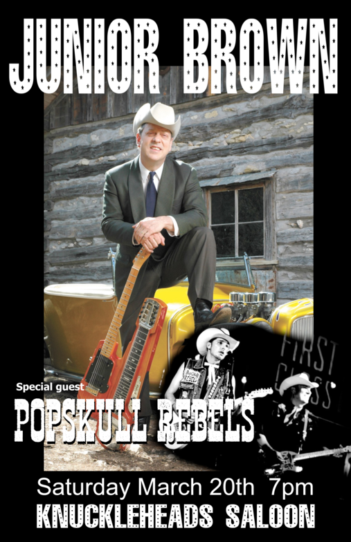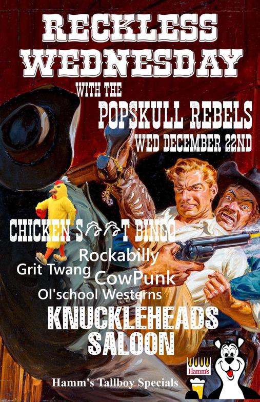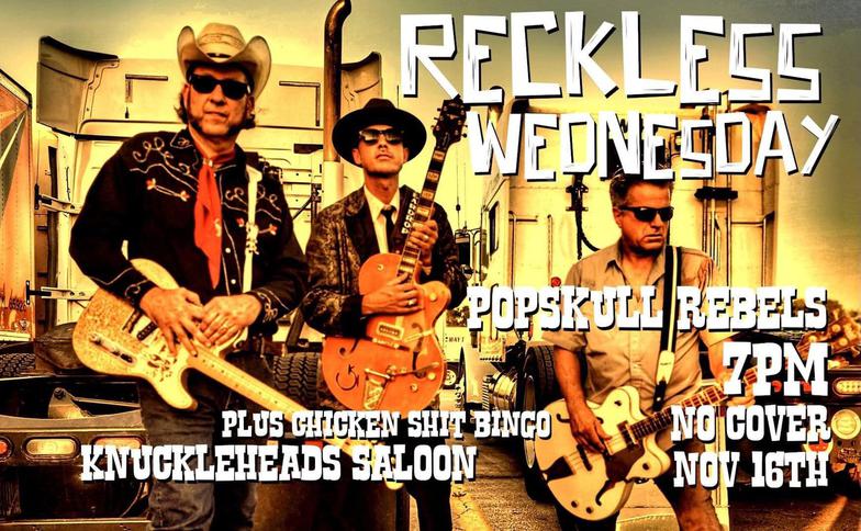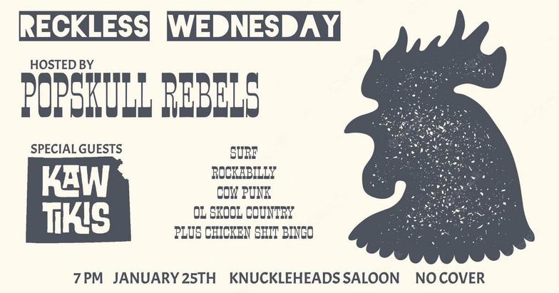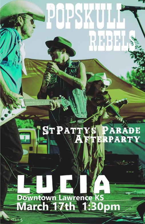 "PopSkull" was a slang word in the Civil War for Cheap Whiskey, we are influence in Ol'school Country and Rockabilly, and a little punk thrown in for good measure! J Doyle is Founding member of the Rumblejetts and Gretsch Artist. JD also in the early 90's was a member of the Roots/Country band the Bindlestiffs,Brian Sifton is from KC's Cry Baby Ranch, a local favorite! Cory Corbino held down the bass for the 90's punks Absolute Ceiling and roots rev ups the Bindlestiffs, KA “TearDrop” Browning, all I can say is just wait! he's like a bull ready to bust out of a gate at a Rodeo! The Rebels have graced the stages opening for Junior Brown, The Smithereens, Reverand Horton Heat, The Vandoliers, Big Sandy,